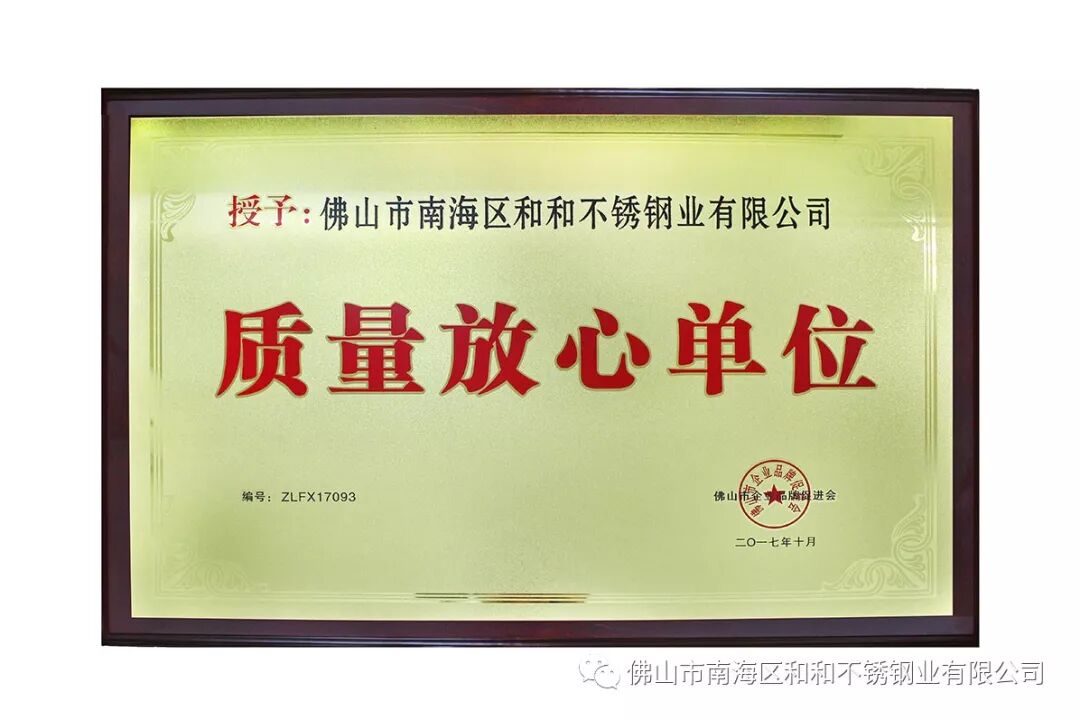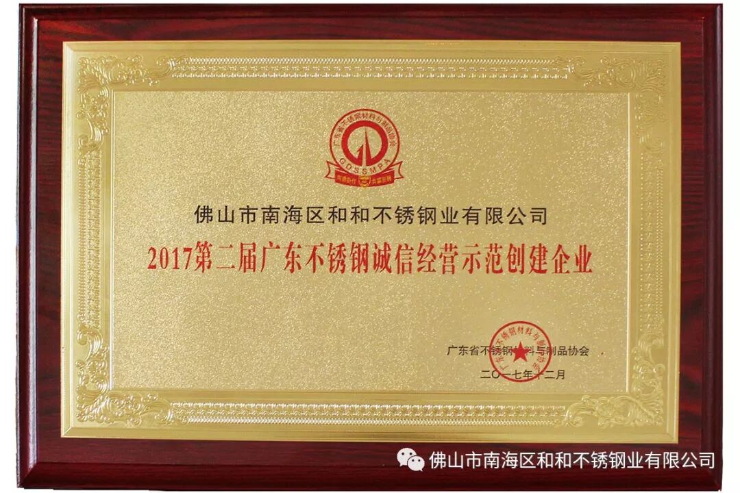 和和不锈钢公司在2017年被授予“2017届广东不锈钢诚信经营示范创建企业”、“质量放心单位”荣誉称号,充分彰显了和和人不畏艰难、奋勇前进的精神面貌,更昭示了一个道理:努力不一定有结果,但不努力一定没有结果!大鹏一日同风起,扶摇直上九万里!在2018年,和和不锈钢业公司将秉持初心,持续前进,努力奋斗,走进新时代、迈上新征程、书写新篇章,再创新业绩!