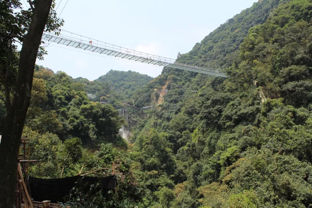 走在古龙峡景区的云天玻霸,第一眼很惊讶,全透明的玻璃栈道立在眼前,透过透明的玻璃桥面,往下面看是深渊,而玻璃栈道下面的悬崖上偶尔生长着的一株树木葱郁,直接顶在玻璃下面。